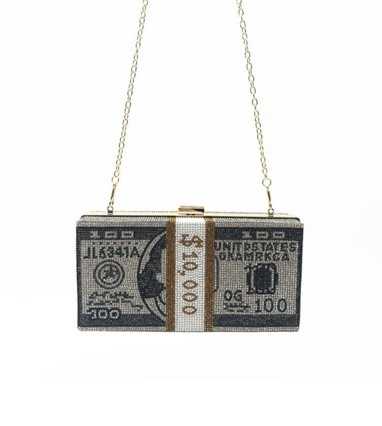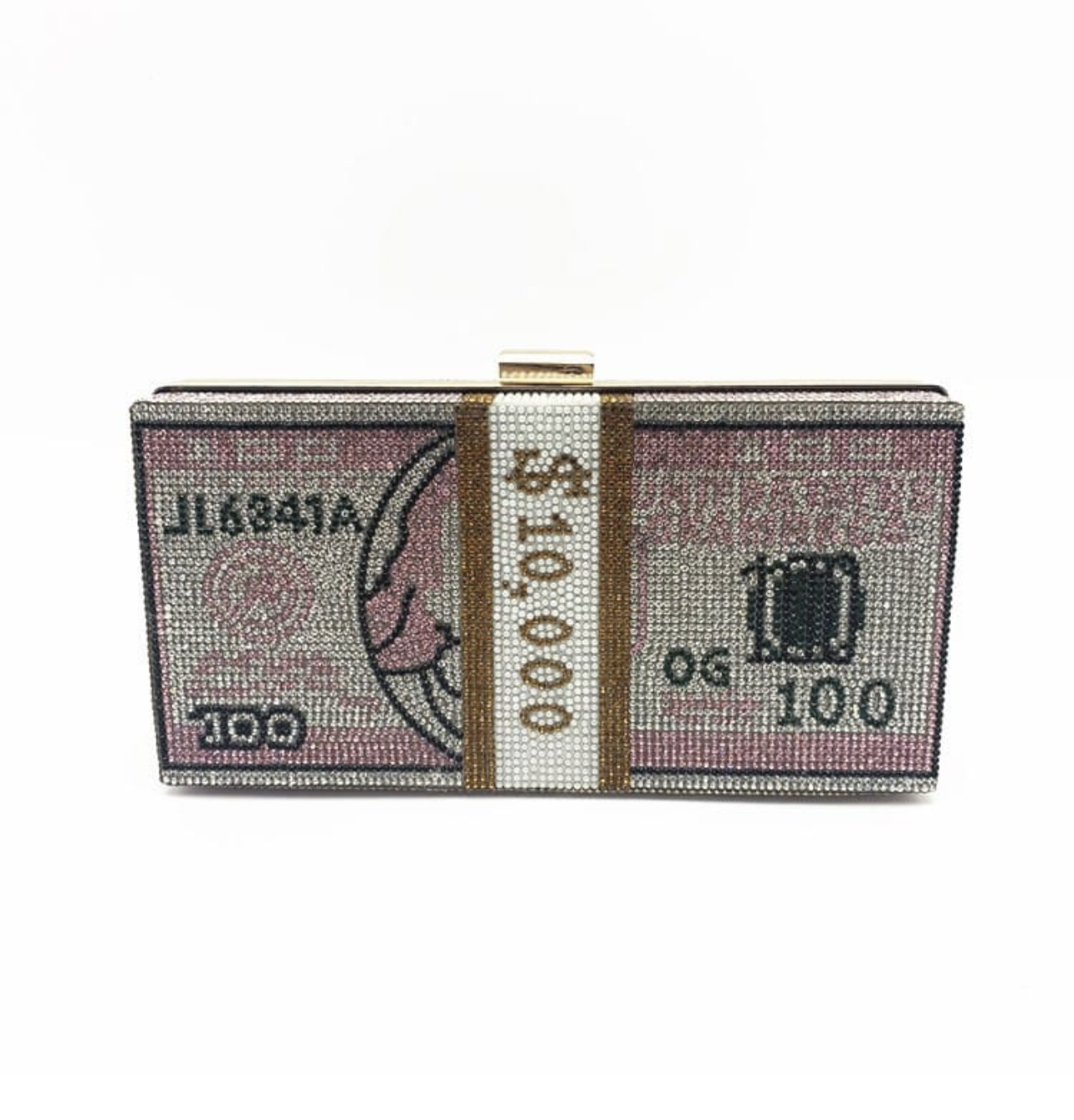 This gorgeous evening bag is available in Grey, Pink and Gold.Â