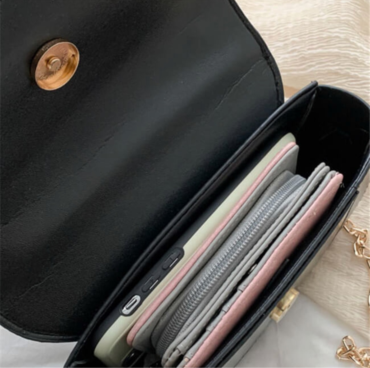 Can only hold a small amount of items. (Small wallet, lip gloss and phone)