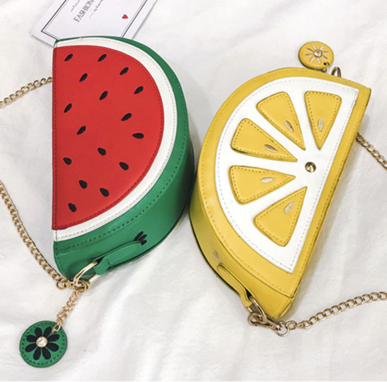 Watermelon and lemon shoulder bag.